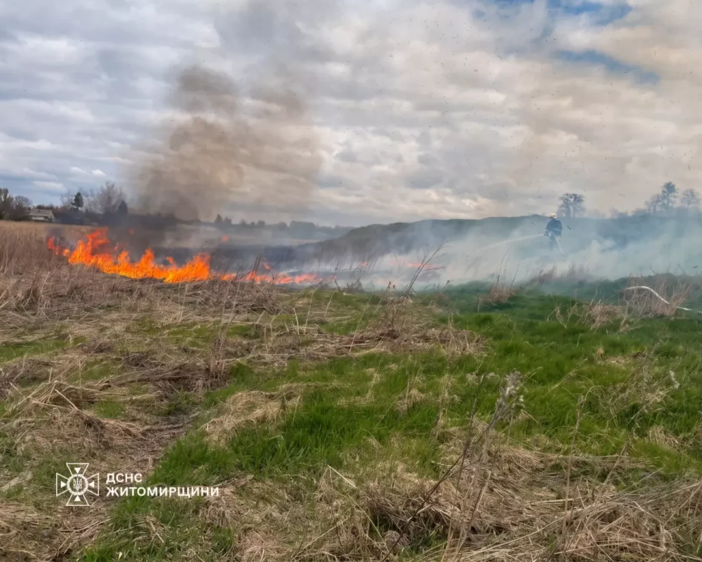 За минулу добу рятувальники Житомирщини ліквідували 12 пожеж сухої рослинності. Загалом вогонь перетворив на згарище понад 8 гектарів територій, завдавши шкоди довкіллю.
