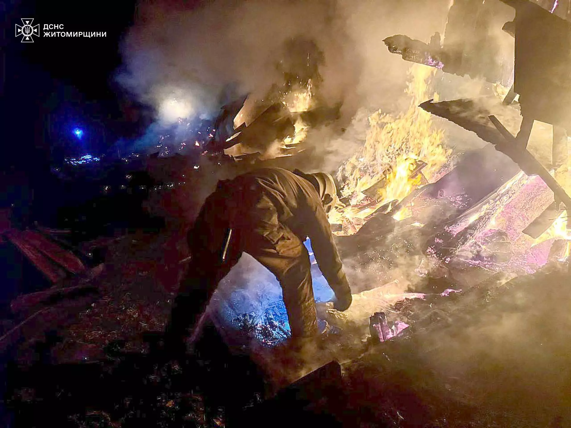 Уночі рятувальників також викликали на гасіння дерев’яної господарчої будівлі в селі Врублівка Романівської громади. Вогонь повністю знищив споруду, але пожежники не дали полум’ю перекинутися на житловий будинок і літню кухню, які знаходилися поруч.