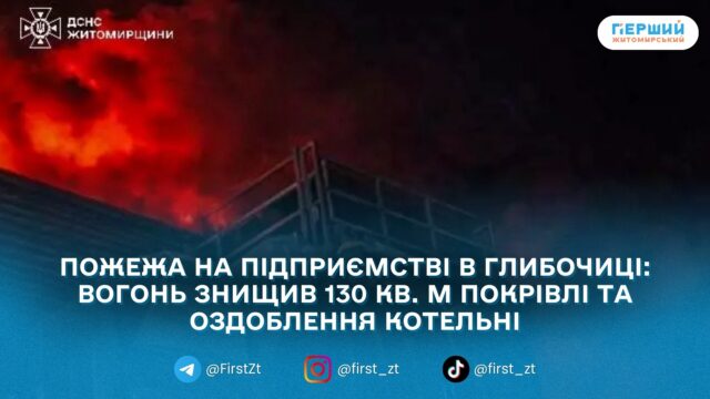 У ніч на 7 лютого рятувальники ліквідували пожежу на території місцевого підприємства у селі Глибочиця Житомирського району. Про це повідомили в ГУ ДСНС у Житомирській області.