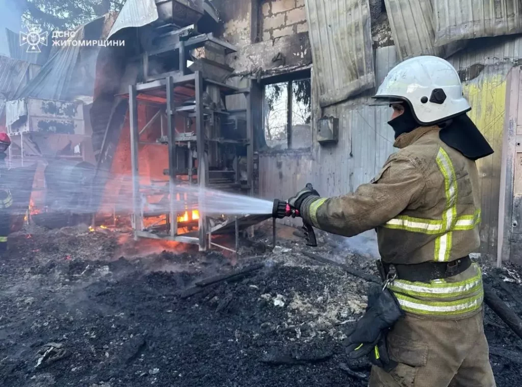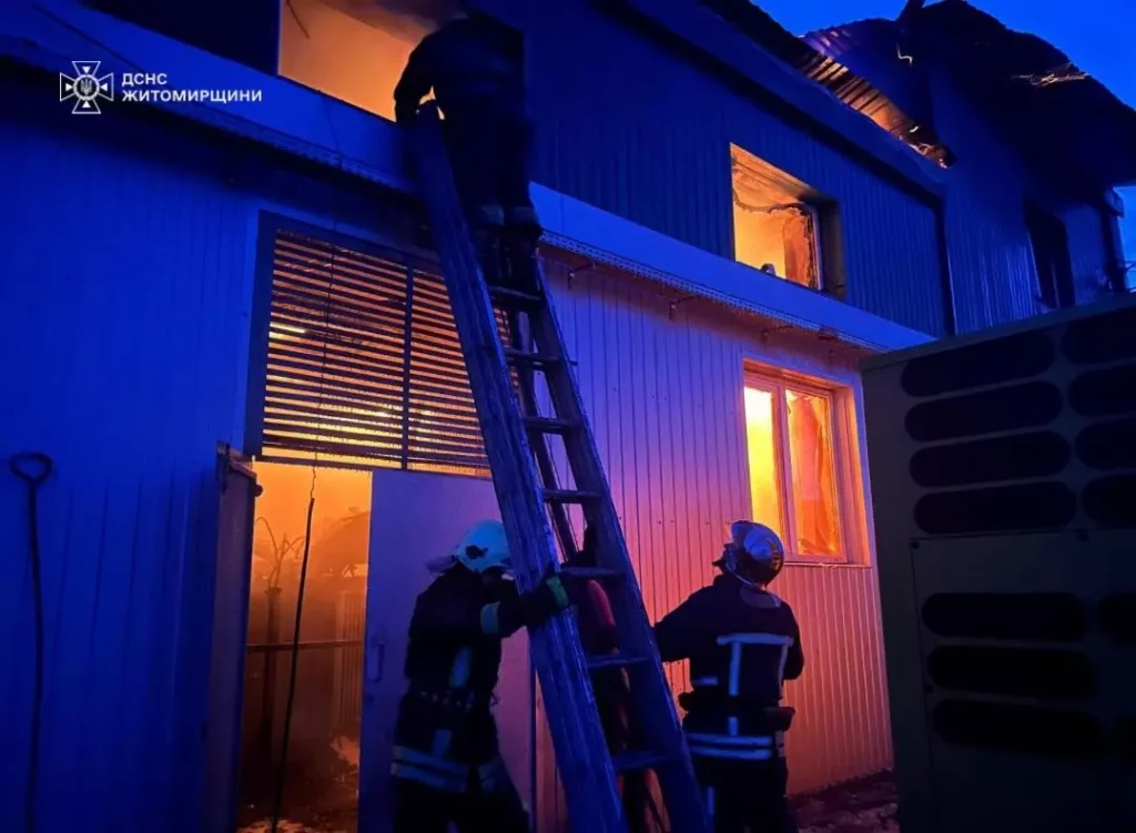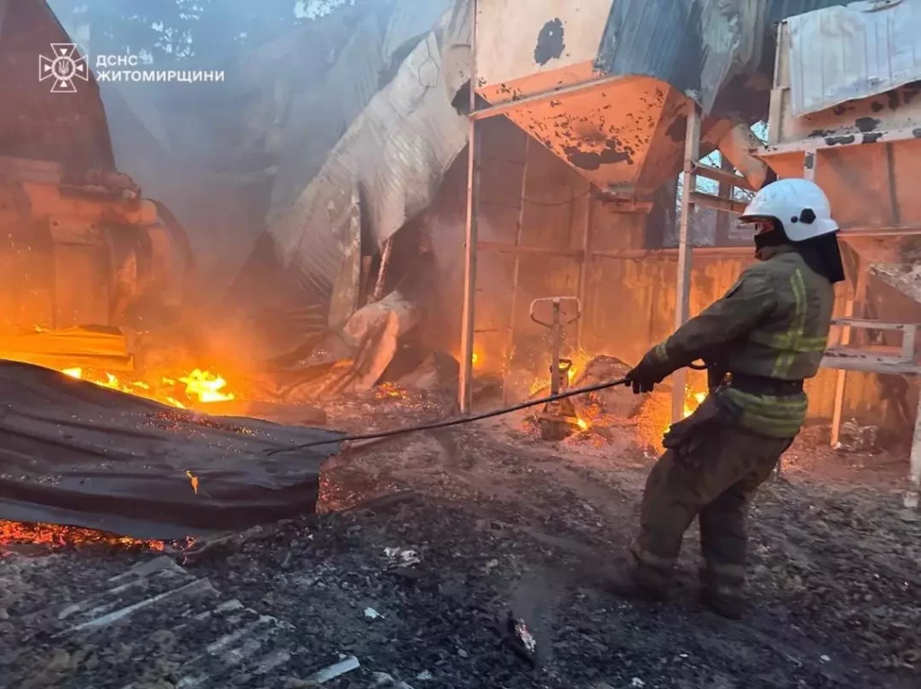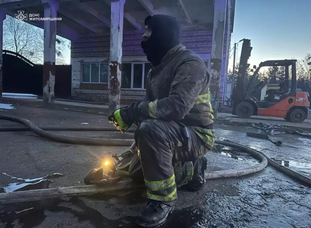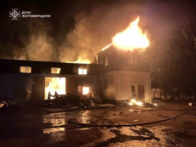 У м. Радомишлі сталася масштабна пожежа на території деревопереробного підприємства. Вогонь охопив покрівлю будівлі на площі 800 кв. м. Гасіння ускладнювалося через велику кількість деревини всередині приміщення та утеплення даху мінватою, повідомляють у ГУ ДСНС у Житомирській області.