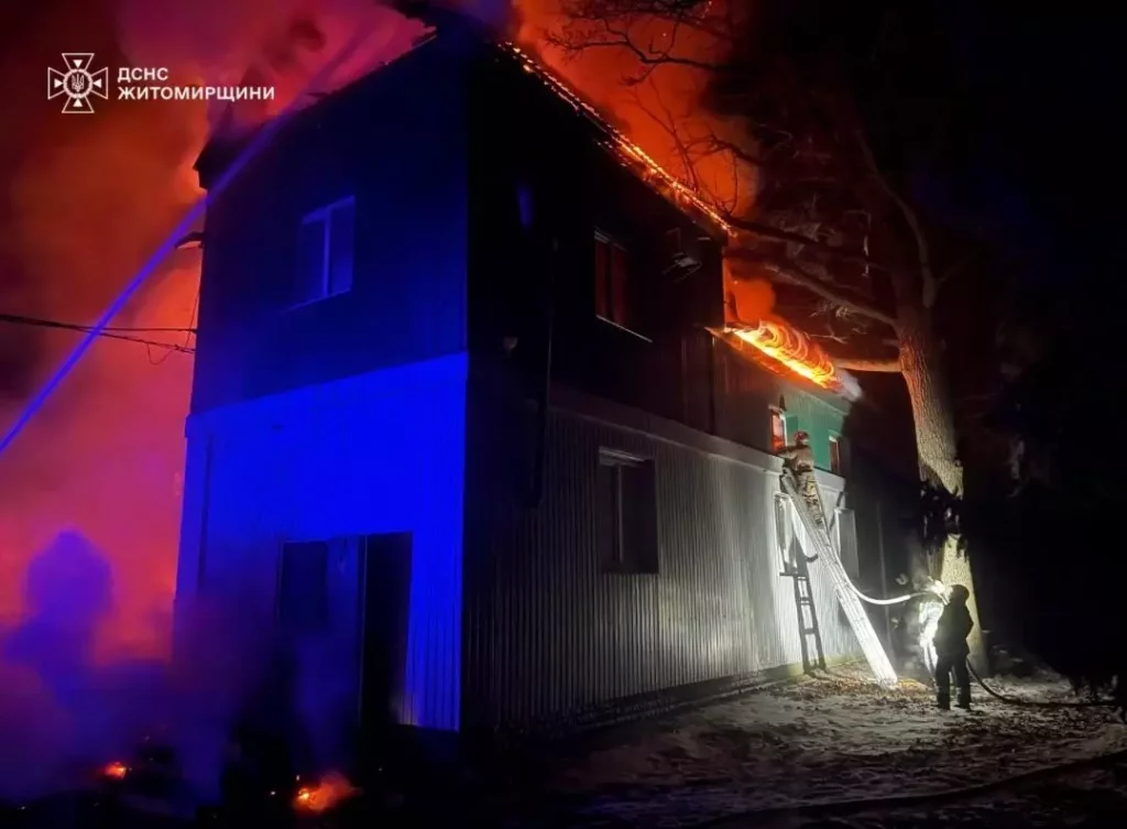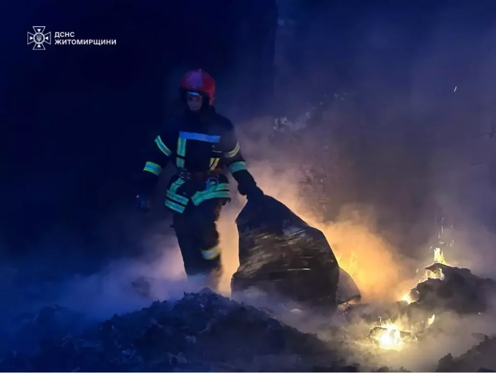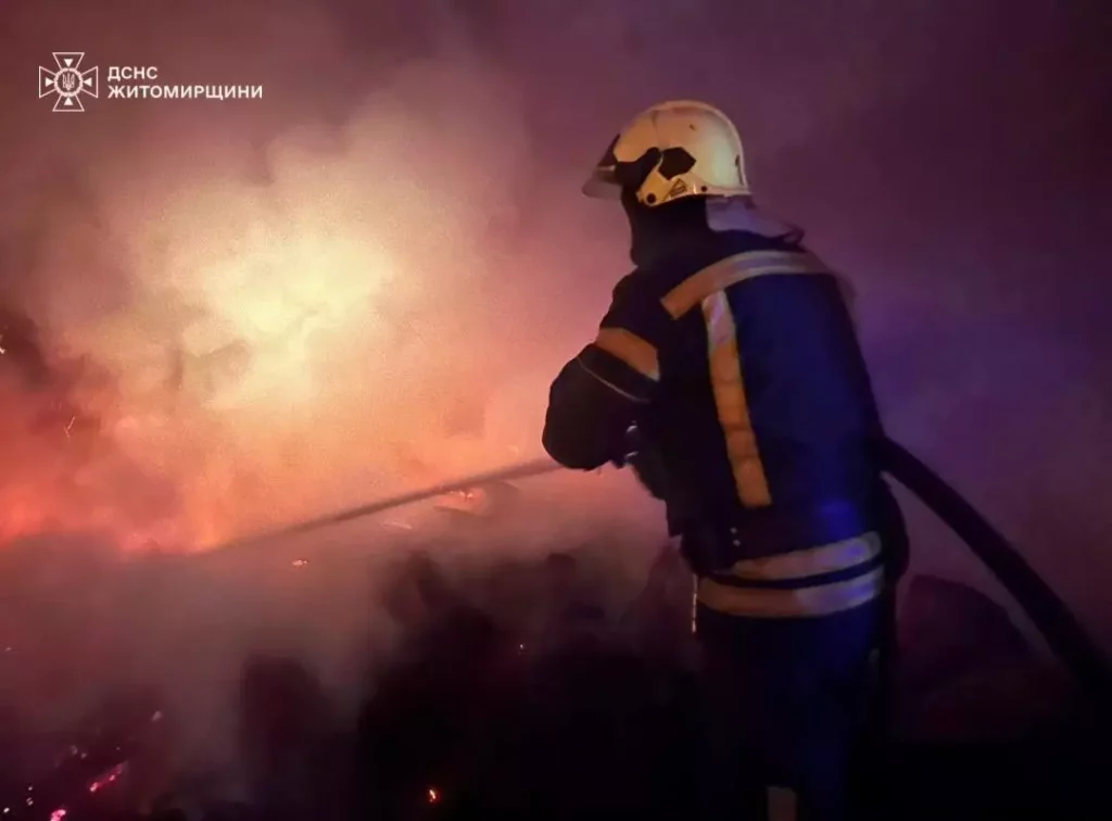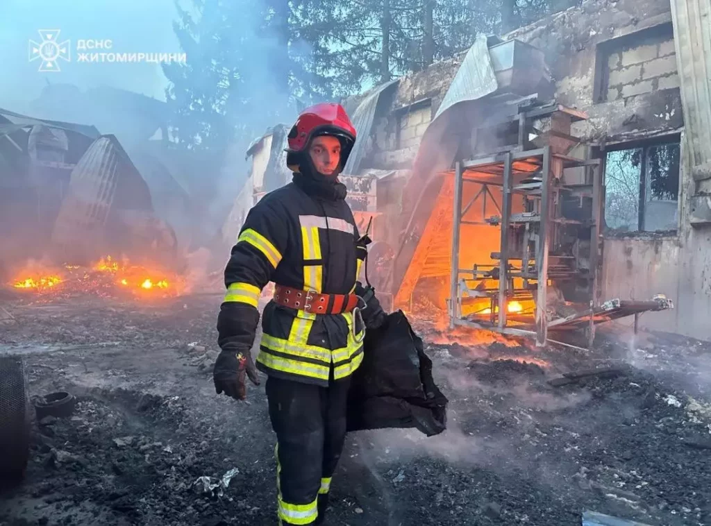 У м. Радомишлі сталася масштабна пожежа на території деревопереробного підприємства. Вогонь охопив покрівлю будівлі на площі 800 кв. м. Гасіння ускладнювалося через велику кількість деревини всередині приміщення та утеплення даху мінватою, повідомляють у ГУ ДСНС у Житомирській області.