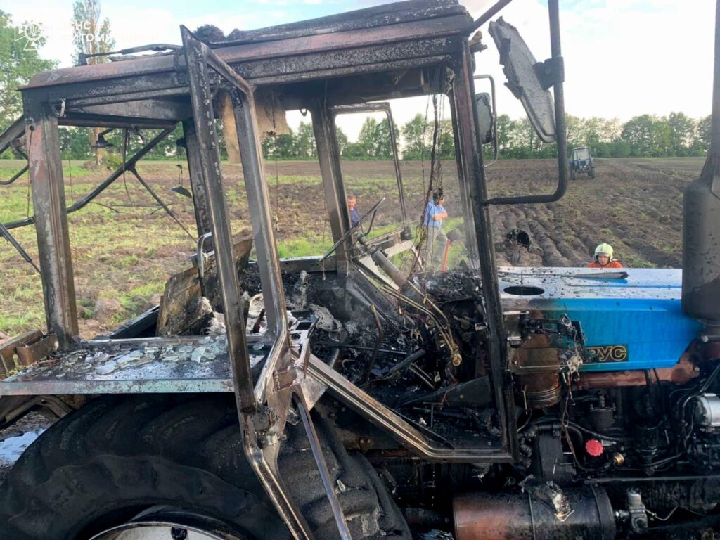 У тому ж населеному пункті під час роботи на полі зайнявся трактор. Рятувальники за 20 хвилин загасили палаючий транспортний засіб. В результаті події вогнем знищено кабіну та колесо трактора.