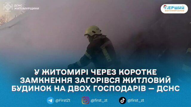 20 січня о 16:15 до Служби порятунку «101» надійшло повідомлення про пожежу у Житомирі — загорівся житловий будинок на двох господарів.