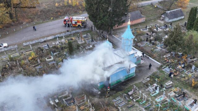 1 листопада о 08:02 Служба порятунку “101” отримала повідомлення про пожежу в дерев’яній будівлі Свято-Миколаївської церкви Української Православної Церкви в селі Зарічани Станишівської територіальної громади Житомирського району. Про це повідомляє ДСНС у Житомирській області.