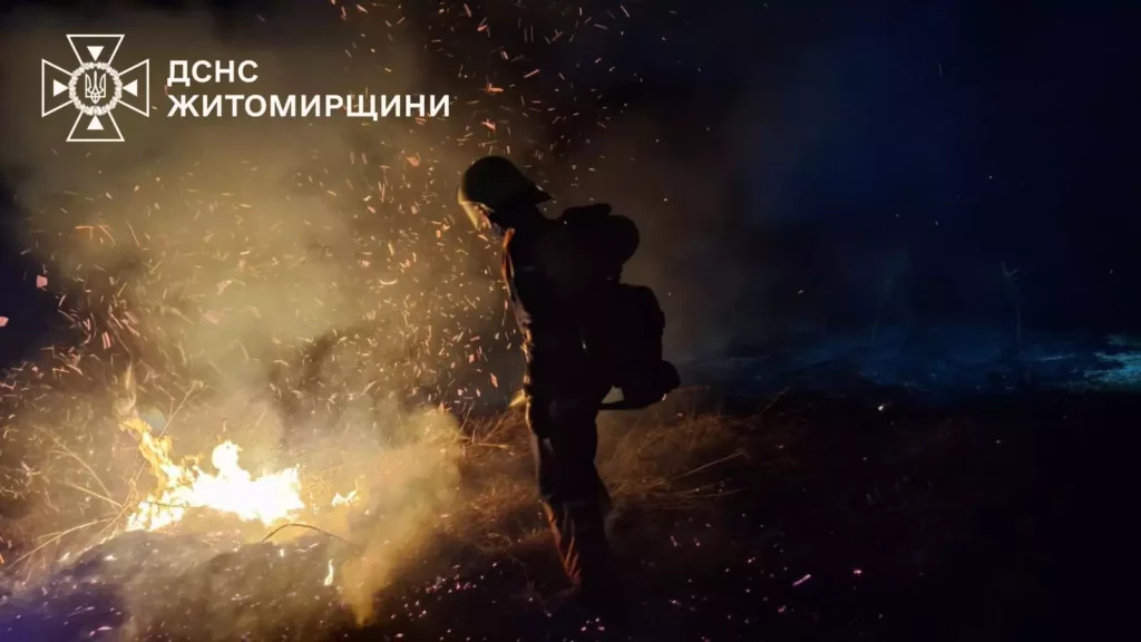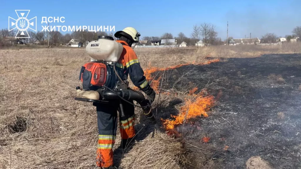 На Житомирщині стрімко зросла кількість пожеж у природних екосистемах. Упродовж минулої доби рятувальники ліквідували 82 загоряння сухої рослинності та чагарників на загальній площі майже 97 гектарів.