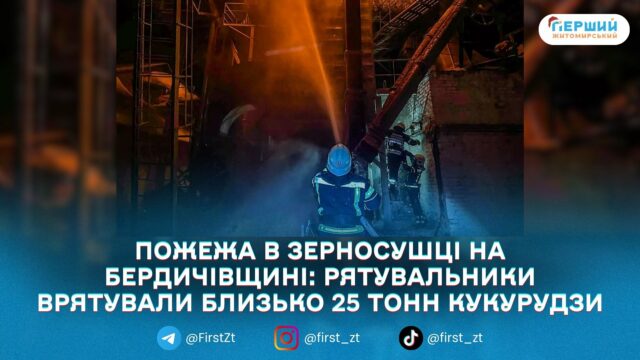 На Бердичівщині рятувальники ліквідували пожежу в зерносушці, що сталася ввечері 14 січня у селі Зарудинці Ружинської громади. Про це повідомили в ГУ ДСНС у Житомирській області.
