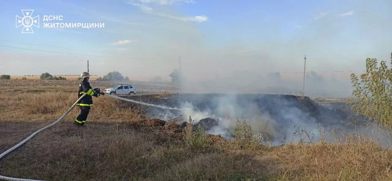 Упродовж доби вогнеборці ліквідували 14 пожеж на відкритих територіях Житомирської області. За інформацією Служби порятунку «101», зокрема 29 вересня о 13:25 надійшло повідомлення про загоряння сухої рослинності у селі Озеряни Овруцької громади Коростенського району.