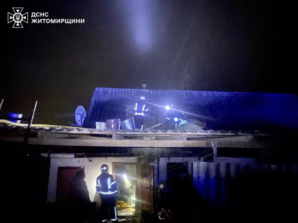Цієї ж ночі вогнеборці ліквідовували пожежу у житловому будинку в селищі Кам’яний Брід, Звягельський район. Ймовірною причиною займання стало порушення правил пожежної безпеки під час експлуатації пічного опалення.