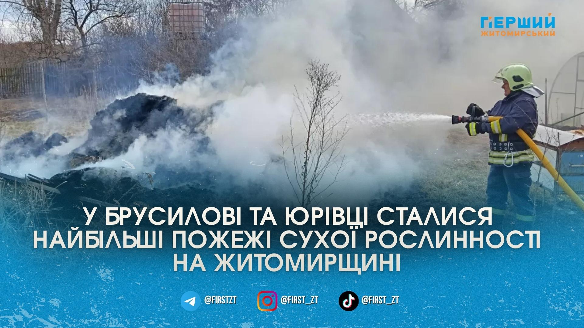 Найбільші займання зафіксували у селищі Брусилів Житомирського району та в селі Юрівка на Коростенщині. У кожному з цих випадків вигоріло близько 2 гектарів території.