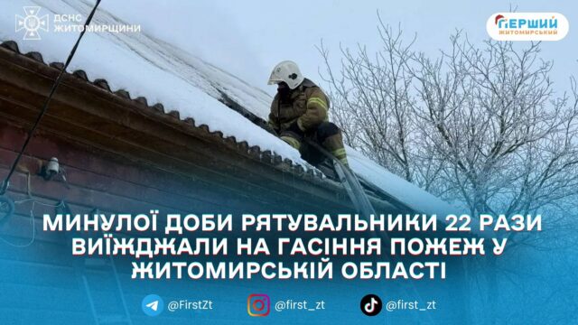 Упродовж минулої доби підрозділи ДСНС Житомирської області 22 рази виїжджали на ліквідацію пожеж по регіону. Про це повідомили в ГУ ДСНС у Житомирській області.