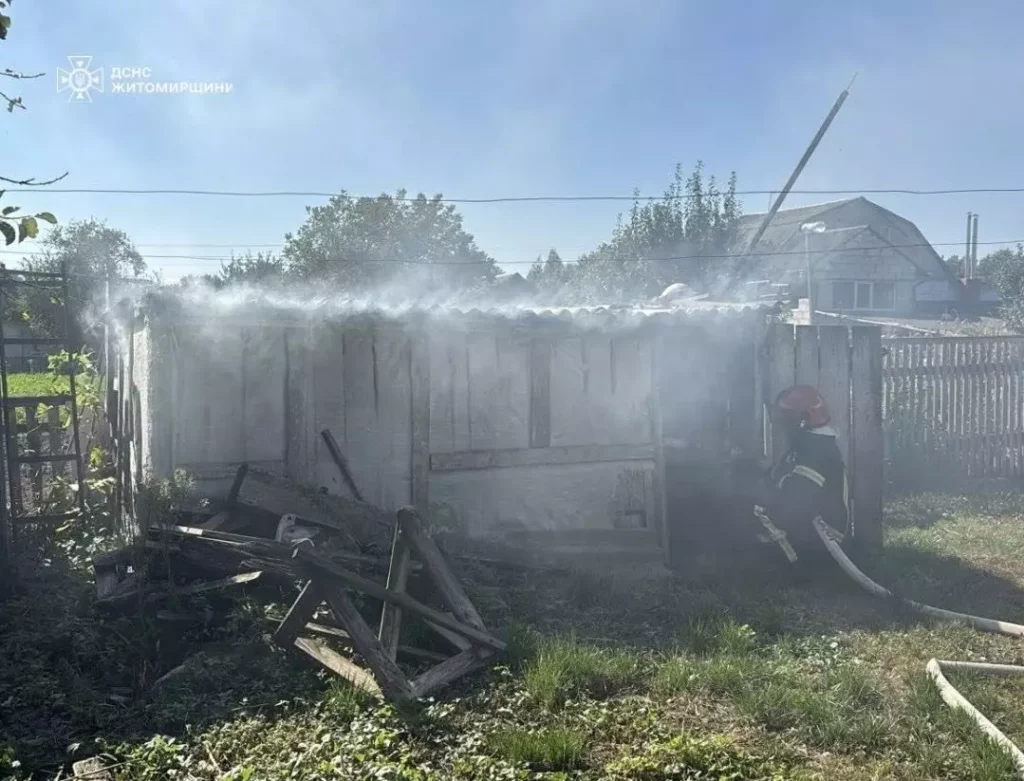 Ще один виклик надійшов із села Веселка Житомирського району, де спалахнула господарча споруда. Полум’я повністю знищило її покрівлю.