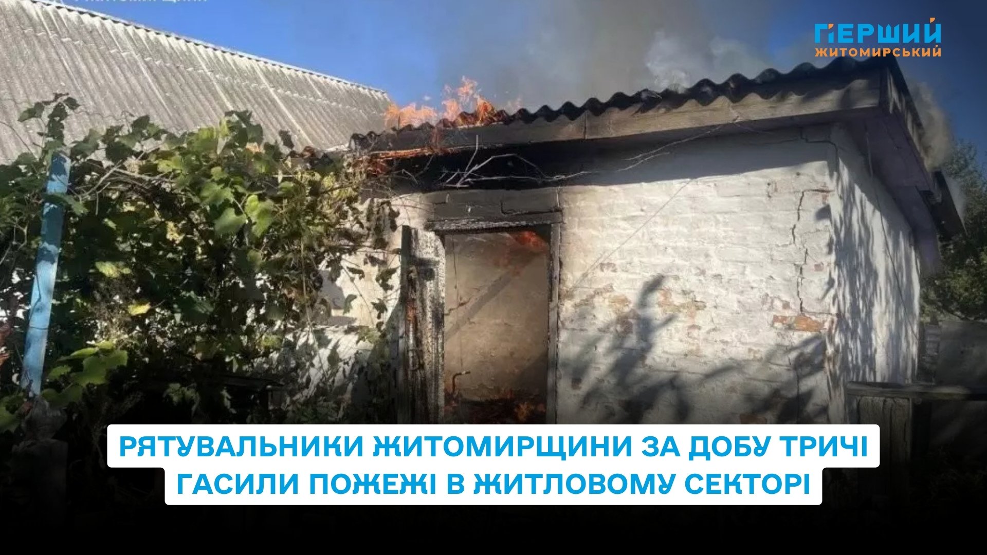 Протягом минулої доби рятувальники Житомирщини тричі виїжджали на гасіння пожеж у житловому секторі. Про це повідомили в ГУ ДСНС у Житомирській області.