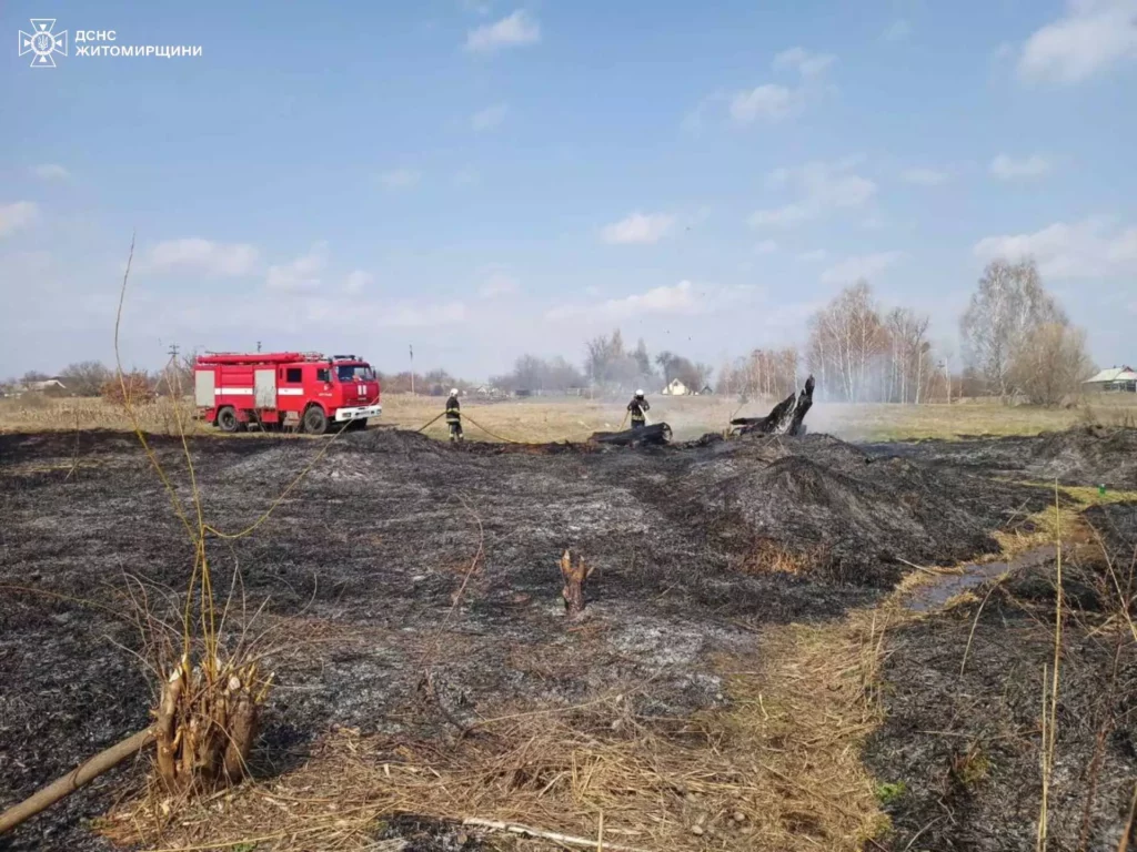 Одним із найсерйозніших випадків стало займання у селі Кичкирі Житомирського району. Полум’я, що поширилося від сухостою, перекинулося на господарську будівлю, яку вогонь повністю знищив.