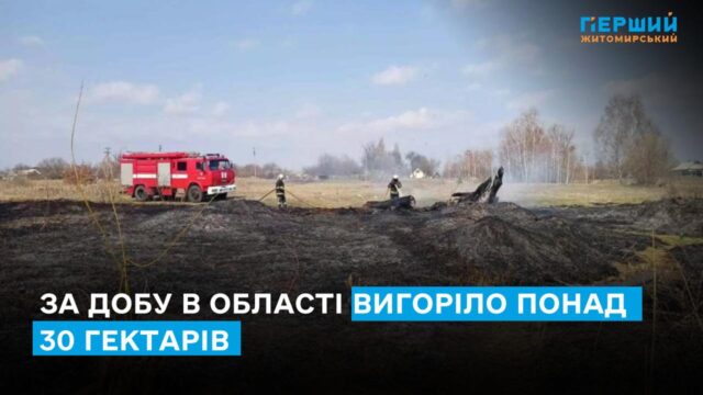 На Житомирщині масштабні пожежі в екосистемах охопили десятки гектарів. Лише за минулу добу рятувальники ліквідували 32 займання, а загальна площа вигорілої території перевищила 30 гектарів.