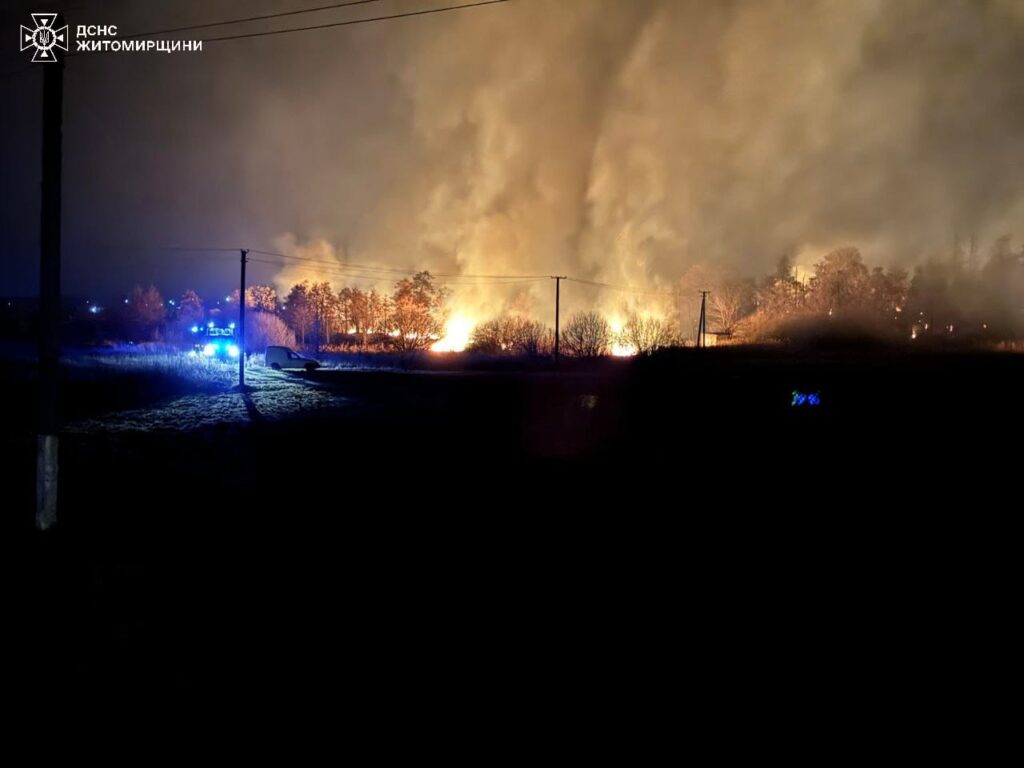 Подібну пожежу, що загрожувала приватному житловому сектору, ліквідовано поблизу с. Стриєва Звягельського району. Там вогнем знищено сухий трав’яний настил на площі 1 га. До того ж, поблизу сіл Рудня-Озерянська та Миролюбів Коростенського району рятувальники залучалися до гасіння торфовищ, що зайнялись на загальній площі 1 га. В усіх випадках загиблих та травмованих не має. Наразі остаточні обставини пожеж на відкритих територіях встановлюються фахівцями.