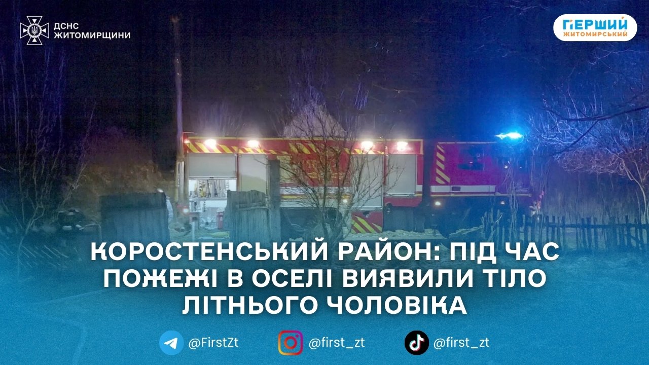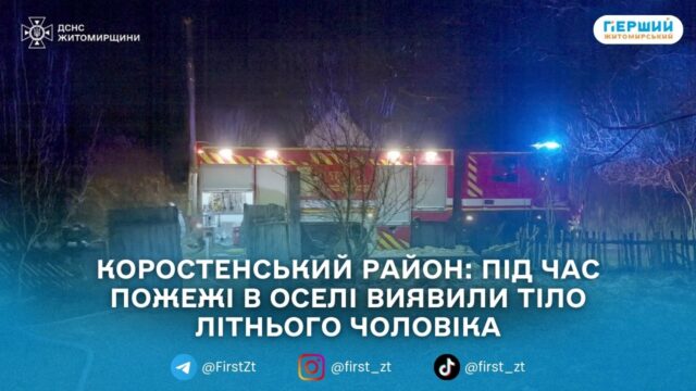 У селі Гошів Овруцької громади Коростенського району під час пожежі в житловому будинку загинув 82-річний чоловік. Про це повідомили в Головному управлінні ДСНС у Житомирській області.