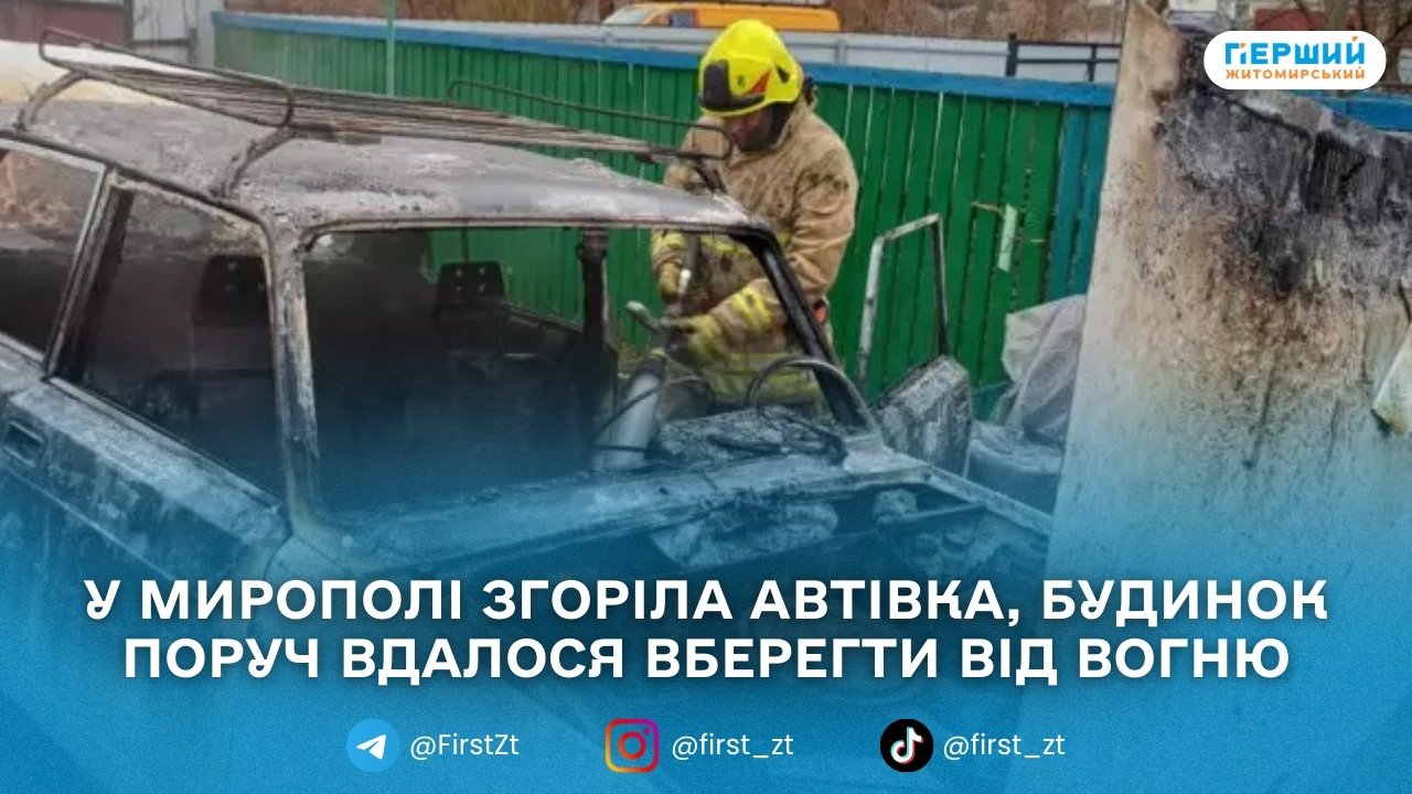11 грудня у селищі Миропіль Житомирського району загорівся легковий автомобіль на приватній ділянці. Про це повідомили в Головному управлінні ДСНС у Житомирській області.
