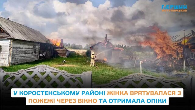 У селі Жерев Народицької громади Коростенського району сталася пожежа в приватному житловому будинку. Вогонь поширився також на дві господарчі будівлі, а під час інциденту травмувалася місцева жителька. Про це повідомили в ГУ ДСНС у Житомирській області.