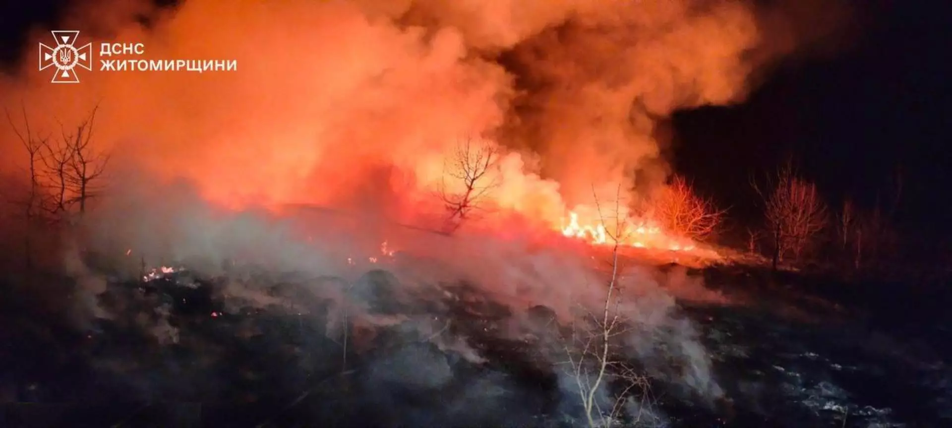 За добу, 22 березня, на Житомирщині зафіксували 124 пожежі сухої трави, які охопили понад 150 га території. Внаслідок займання постраждали двоє людей, серед них – 96-річний чоловік.
