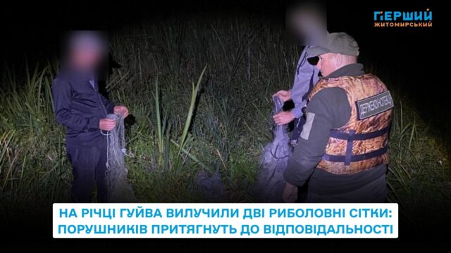 1 вересня на річці Гуйва у селі Ліщин Житомирського району інспектори Державної екологічної інспекції Поліського округу під час рейду виявили двох чоловіків, які ловили рибу за допомогою сіток у забрід.