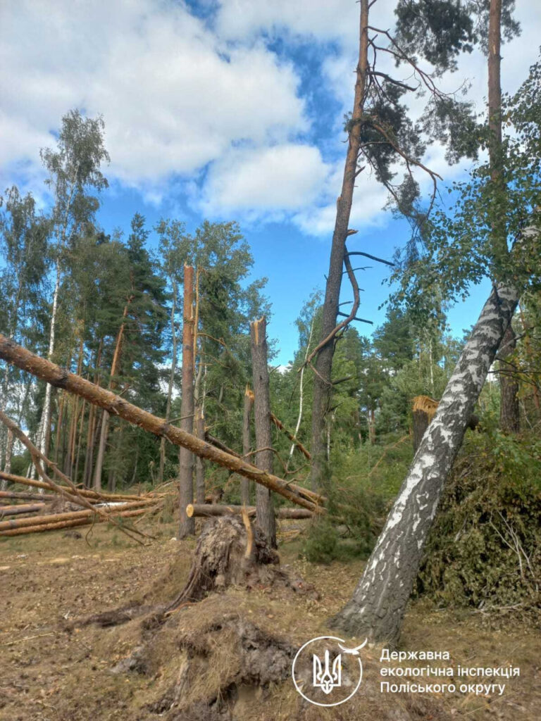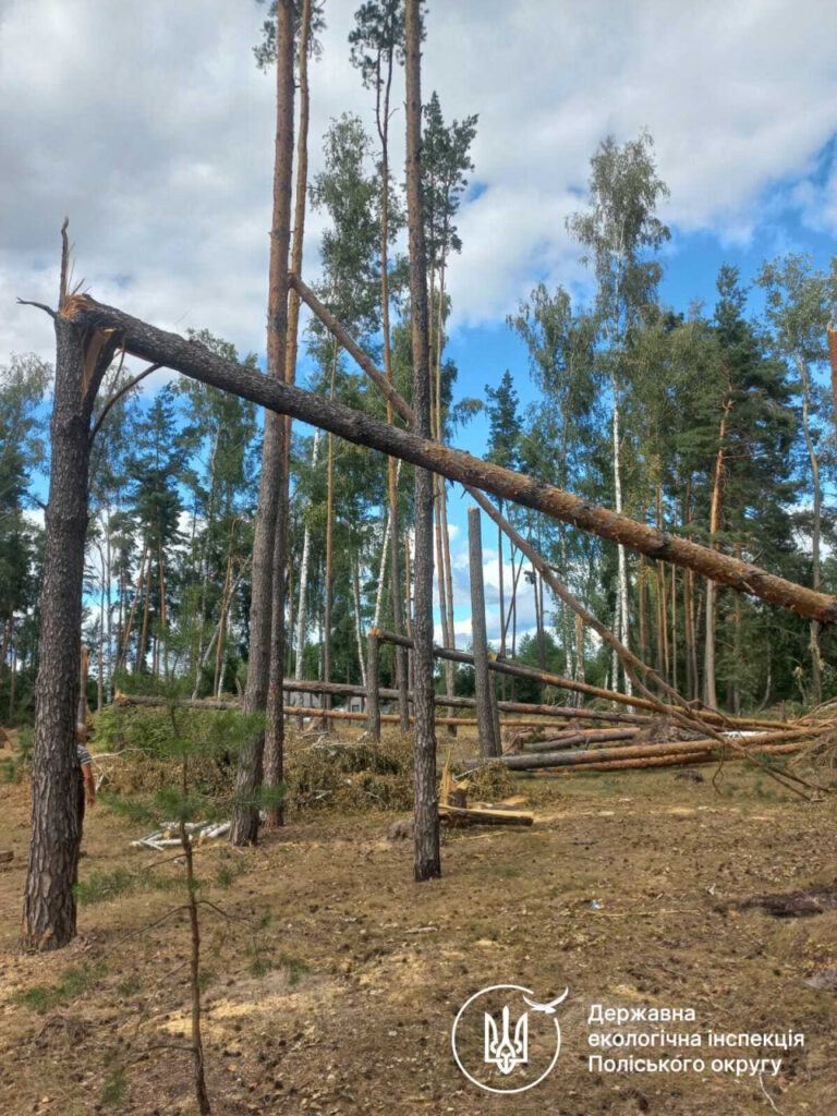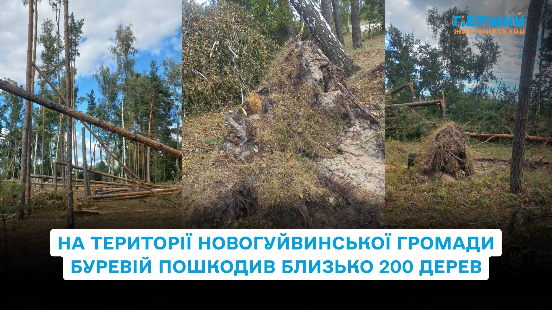 У Новогуйвинській громаді Житомирського району внаслідок буревію, який пройшов 6 серпня, пошкоджено близько 200 дерев. Найбільше постраждали насадження у селі Головенка — переважно берези та сосни, що ростуть на землях комунальної власності. Про це повідомляє екоінспекція області.