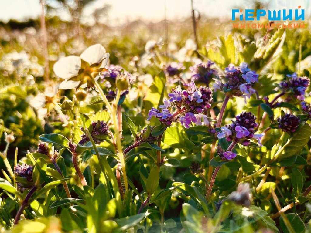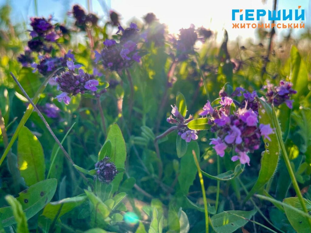 Приміром, ще з кінця квітня на Житомирщині почав квітнути чебрець (зазвичай травень-липень) – багаторічна рослина з фіолетовими або рожево-бузковими суцвіттями на стеблах висотою до 40 см.