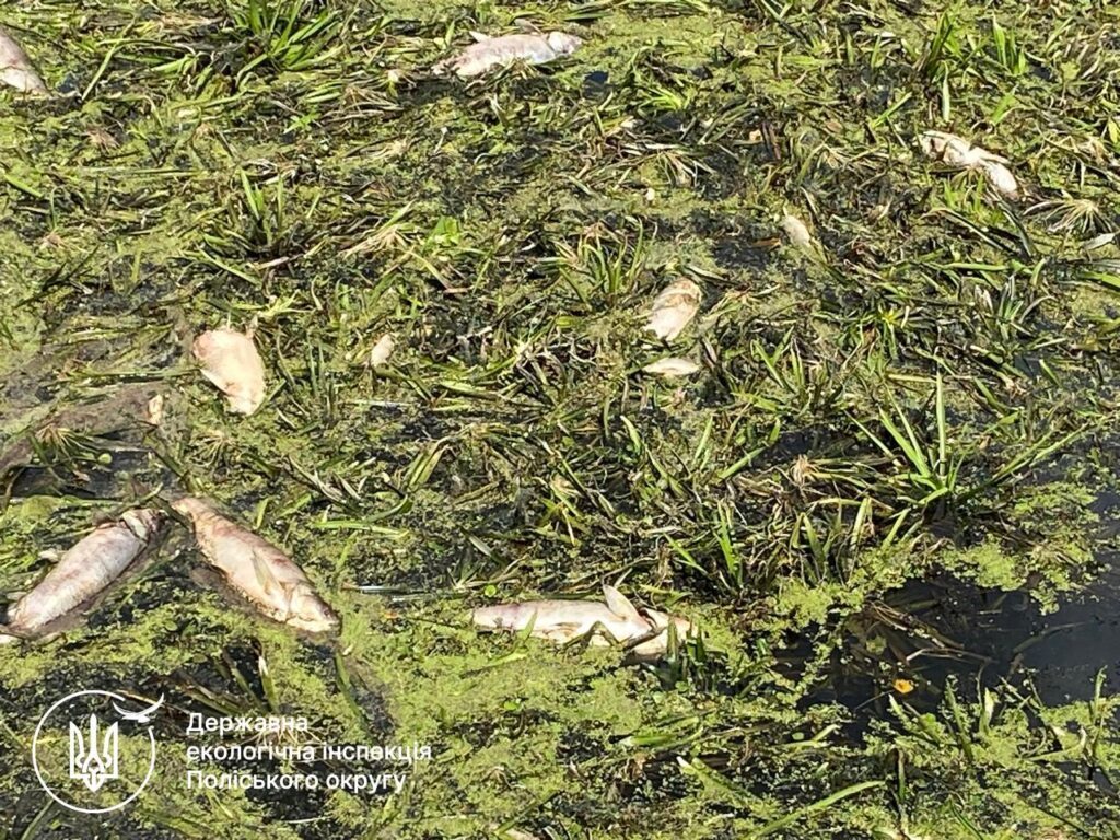Масова загибель водних біоресурсів виявлена у смт Ємільчине — фахівці відібрали проби води та підраховують збитки