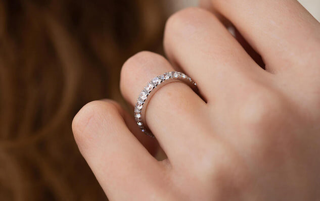 Класикою є розташування по обідку, коли розсип гармонійно доповнює загальну форму та конструкцію каблучки. При цьому прикраса виглядає лаконічно і оригінально, може підходити під різні образи.