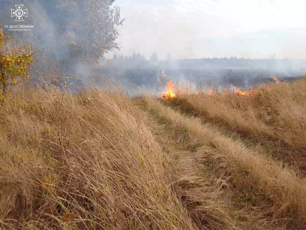 Учора 14 жовтня в Житомирській області рятувальники та місцеві жителі успішно загасили три пожежі сухостою. Одна з них загрожувала приватним будинкам у селі Жадьки, що входить до Черняхівської ОТГ. Сильний вітер спричинив розповсюдження вогню на площі 2,5 гектара. Рятувальники витратили майже дві години на подолання пожежі, використовуючи 5 осіб і техніку. В сусідньому районі в селі Соболівка відбулася пожежа сухостою, на території площею 2 гектари, яку гасили протягом 5 годин. Рятувальники та місцеві жителі спільними зусиллями боролися з вогнем в селах Великий Дивлин і Головки Коростенського району. Також поблизу смт Бучмани Білокоровицької ТГ гасили пожежу торфу площею 0,05 га. Загалом, вогнем було пошкоджено 3,25 га землі.