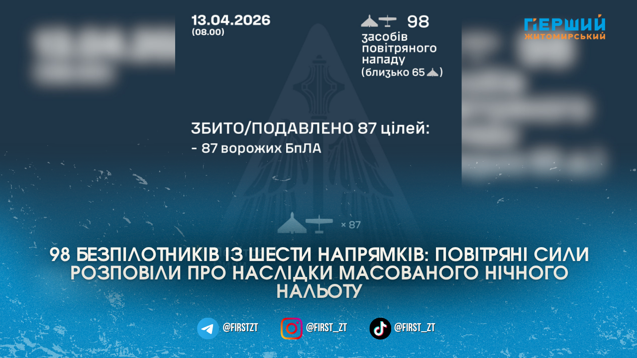 У ніч на 13 квітня Росія знову випробувала на міцність українську протиповітряну оборону. Ворог запустив по Україні 98 ударних безпілотників різного типу, більшість із яких вдалося знищити або посадити за допомогою РЕБ.
