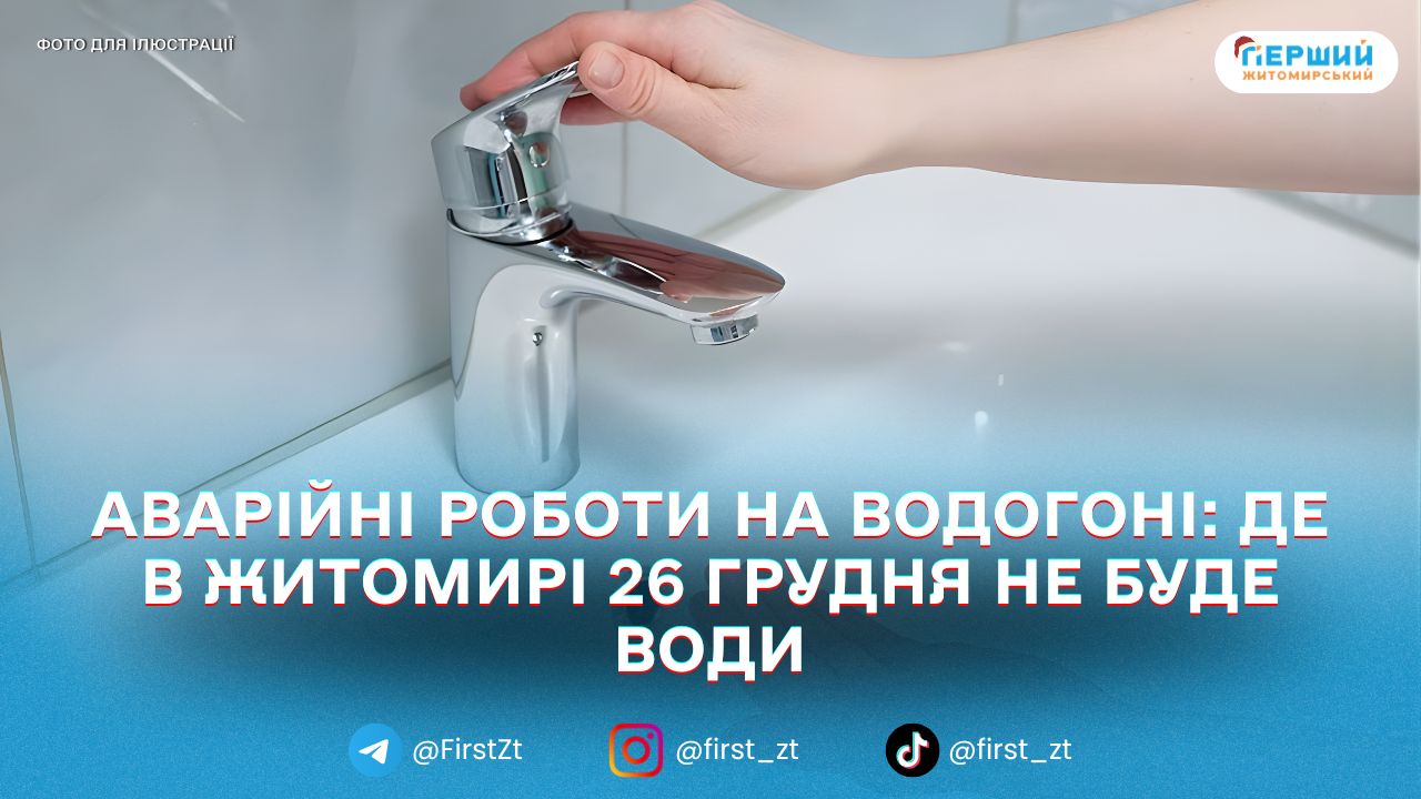 У Житомирі 26 грудня через аварійно-відновлювальні роботи на водогоні тимчасово призупинять водопостачання на низці вулиць та провулків.