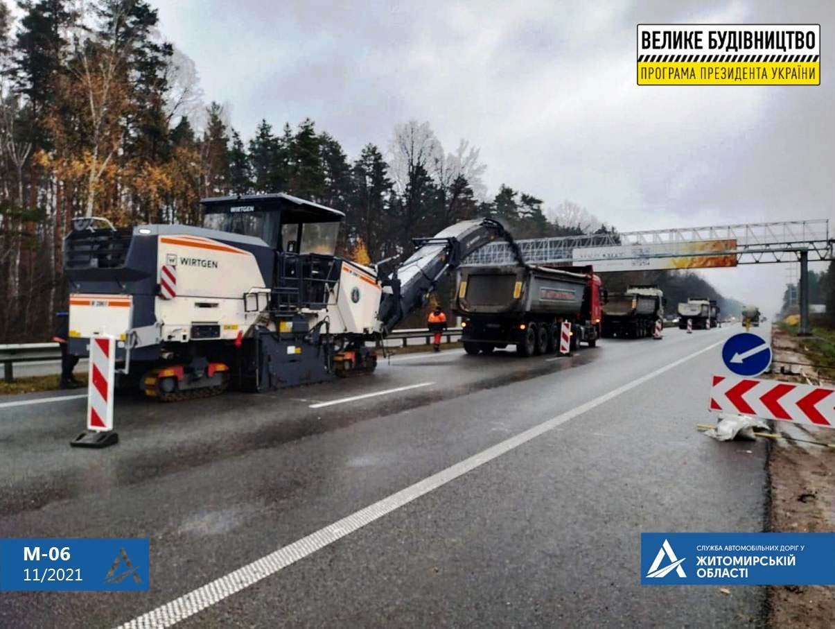 Виконується фрезерування існуючого дорожнього покриття та влаштування вирівнюючого шару асфальтобетонного покриття”.