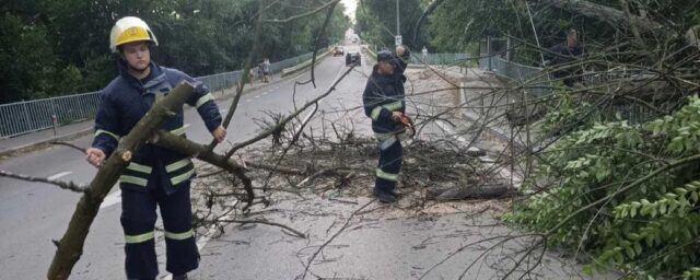 Крім того, упродовж минулої доби сильні пориви вітру повалили дерева. Зокрема, у місті Коростишів дерева попадали на проїжджу частину, частково перекривши рух автотранспорту. У селищі Червоне Бердичівського району аварійне дерево перекрило ще один автошлях. У місті Радомишль гілля та стовбури спричинили перепони для людей поблизу мосту. Рятувальники порізали бензопилами усі утворені перешкоди та прибрали рештки на узбіччя. Постраждалих внаслідок негоди немає.