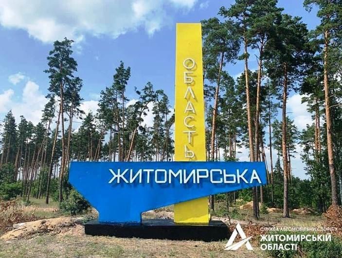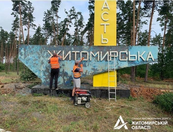 До Дня Державного прапора України розчистили та оновили синьо-жовтого кольори стелли на в‘їзді до Житомирської області.