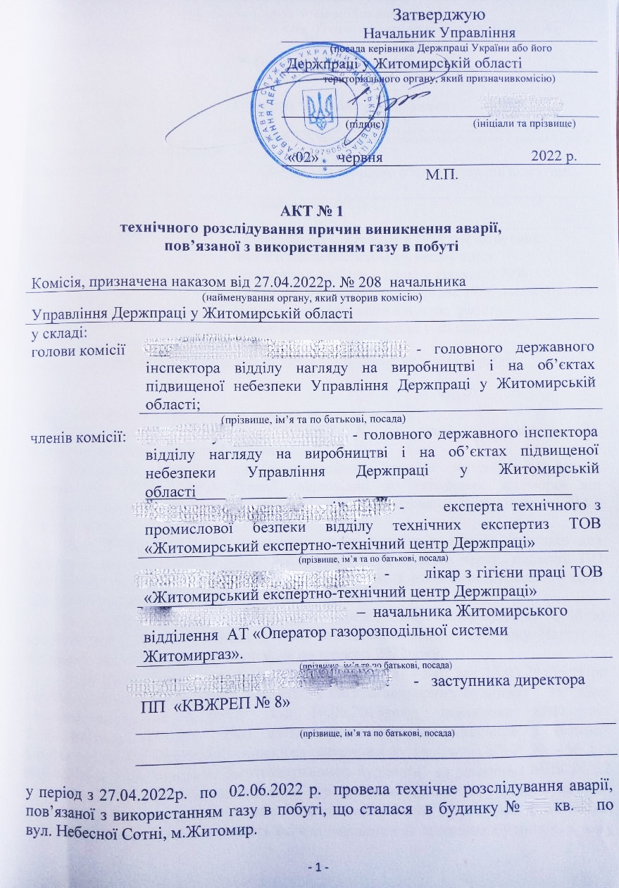 У акті технічного розслідування причин аварії зазначено: «планове технічне обстеження внутрішньо будинкових систем газопостачання не проводилося. Акт планового технічного обслуговування внутрішньо будинкових систем газопостачання (ПТО) відсутній. Договір на технічне обслуговування внутрішніх газопроводі і газового обладнання квартири №# не укладався». Загалом, в процесі розслідування виявлено низку порушень вимог нормативно-правових актів з промислової безпеки та охорони праці, що створюють загрозу виникнення аварійних ситуацій при експлуатації систем газопостачання.
