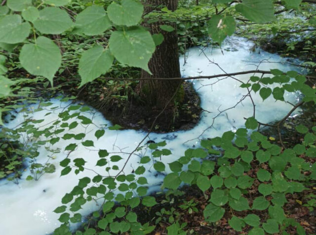 З метою встановлення фактів, викладених у зверненні, державні інспектори з охорони навколишнього середовища виїхали на місце та в ході обстеження території виявили поліетиленову трубу з приєднаним пожежним шлангом, з якої періодично відбувається скид води білого кольору з хімічним запахом”, – повідомили в екоіспекції.