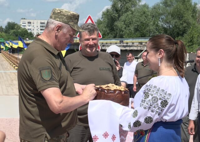 Відбудований міст знищений росіянами міст відбудували в Житомирській області. Відкривали тимчасову переправу урочисто – з короваєм, перерізанням стрічки та за участю посадовців – голови ОВА Бунечка, а також голови Адміністрації Держспецтрансслужби Бондаря.