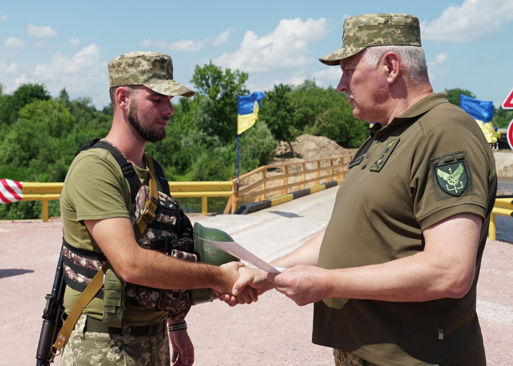 “Знаменне те, що начальник Житомирської обласної військової адміністрації приїхав з одного берега, а ми – з іншого. Це возз’єднання берегів не тільки фізичних, а й поєднання цивільної та військової структури, це поєднання загальної роботи яку ми робимо”, – зазначив генерал-майор Богдан Бондар.