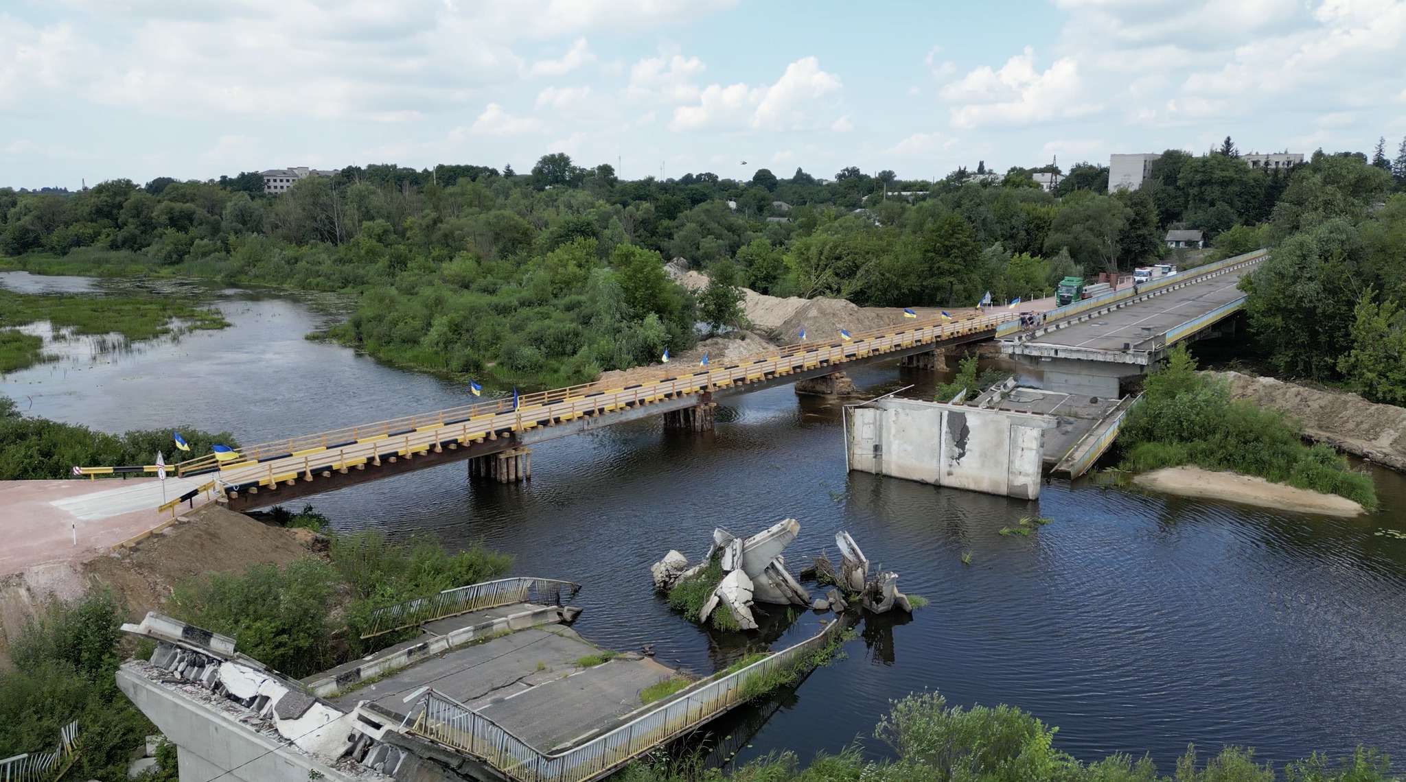 Цей міст підірвали росіяни, коли втікали від ЗСУ. Відбудовували ж тимчасову споруду за зібрані кошти United24.
