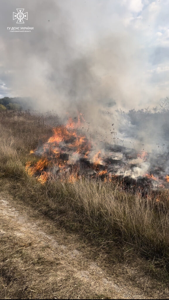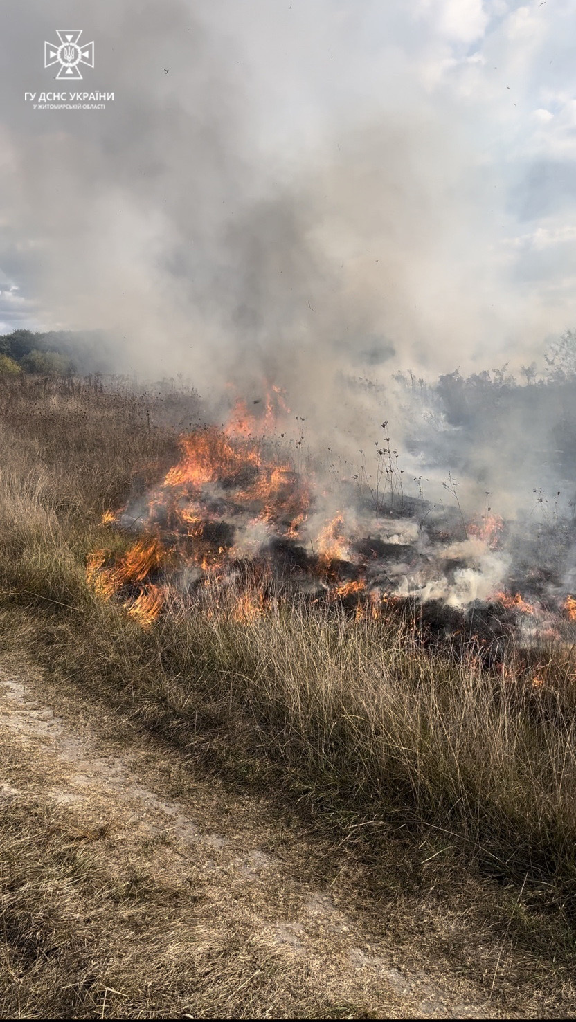 Минулої доби 2 жовтня у Житомирській області рятувальники ліквідували 5 пожеж, вогонь охопив загалом майже 4 га площі сухої рослинності.