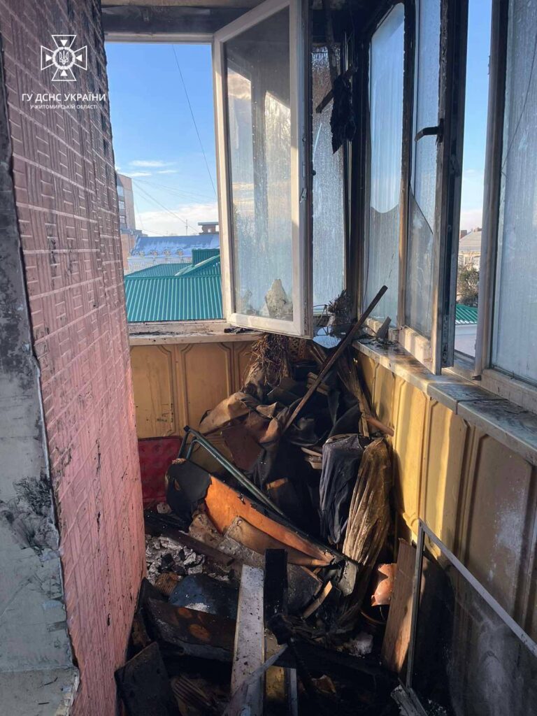 У Житомирі 10 лютого о 8:30 год. на у квартирі на вул. Івана Кочерги загорівся балкон. Обійшлося без постраждалих – літнього господаря розбудили та виведи в безпечне місце.