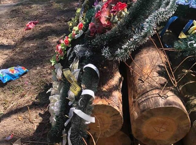 Крадену деревину заховали біля кладовища у Тетерівській ОТГ та накрили вінками з цвинтаря. Пластикові відходи закопали в землю.