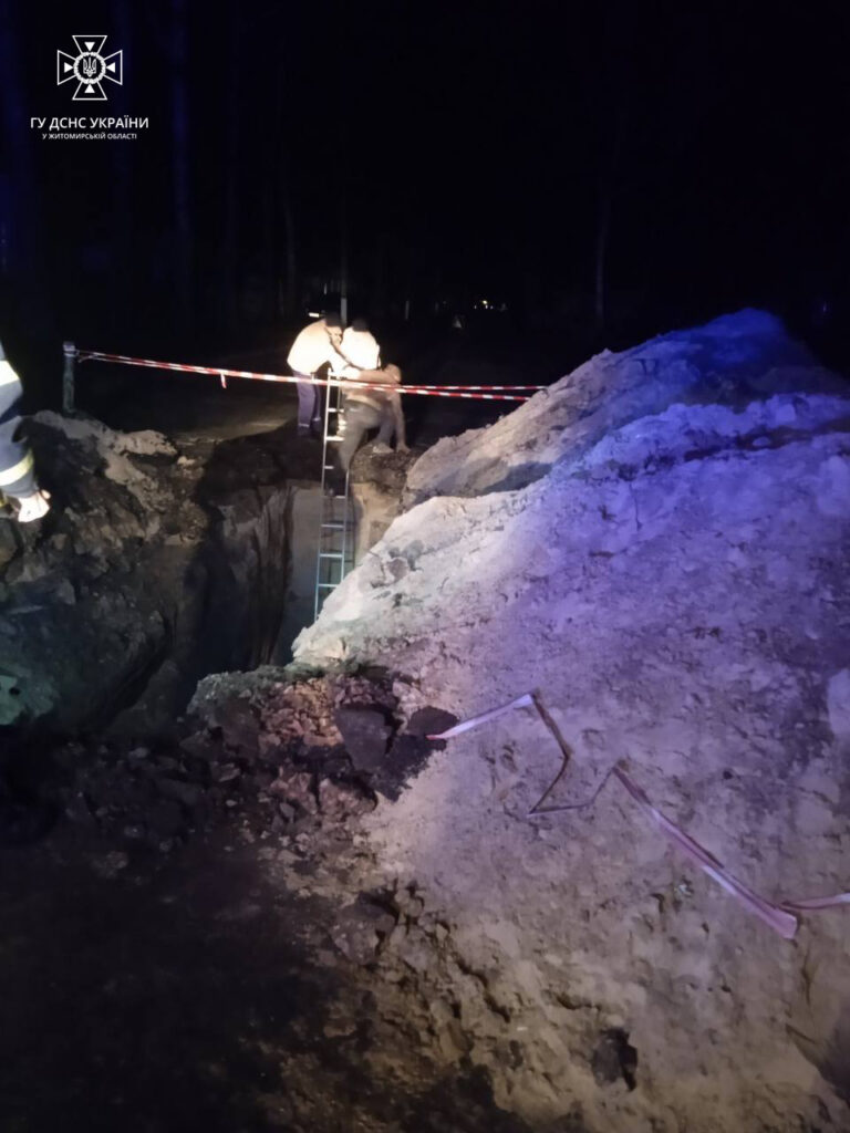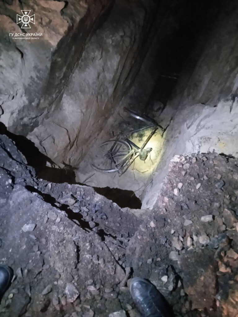 У Овручі Коростенського району 15 листопада о 23 год. рятувальники діставали чоловіка, який разом із велосипедом упав у будівельний котлован. Чоловік вдарився головою, але залишився при свідомості та кликав на допомогу.