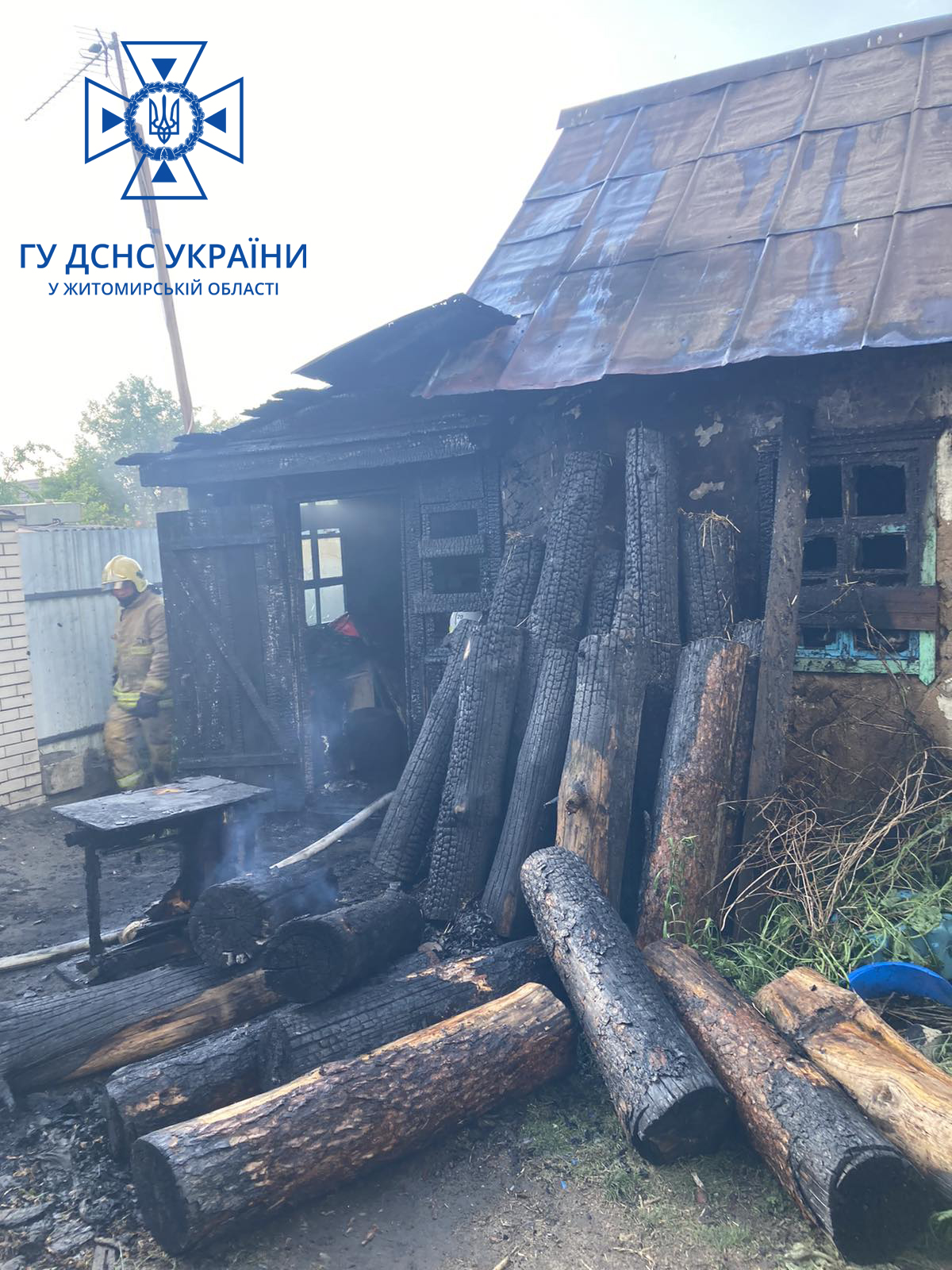 Вчора, 26 травня сталася пожежа в дерев’яній кухні в місті Коростишів. Власник намагався самостійно загасити полум’я, однак отримав опіки рук та обличчя.