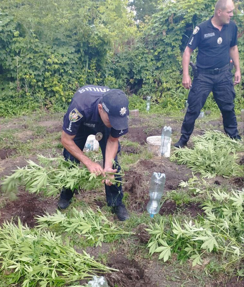 “Днями під час обходу дільниці обслуговування у с. Дерганівці Ружинської громади офіцери поліції виявили на присадибній ділянці місцевого жителя 140 рослин коноплі. Доглянуте нарковмісне зілля росло на закритій кущами прибережній зоні.