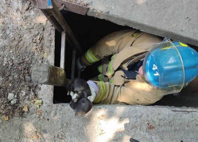 Фахівці ДСНС, які прибули до місця виклику, за допомогою штурмової драбини спустилися на дно каналізаційного колодязя глибиною близько 4 м. Собаку обв’язали пожежним рукавом та підняли наверх. Ніяких видимих ушкоджень тварина не отримала. Вона одразу змогла самостійно пересуватися.