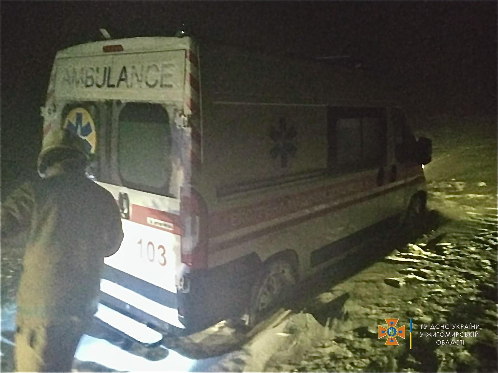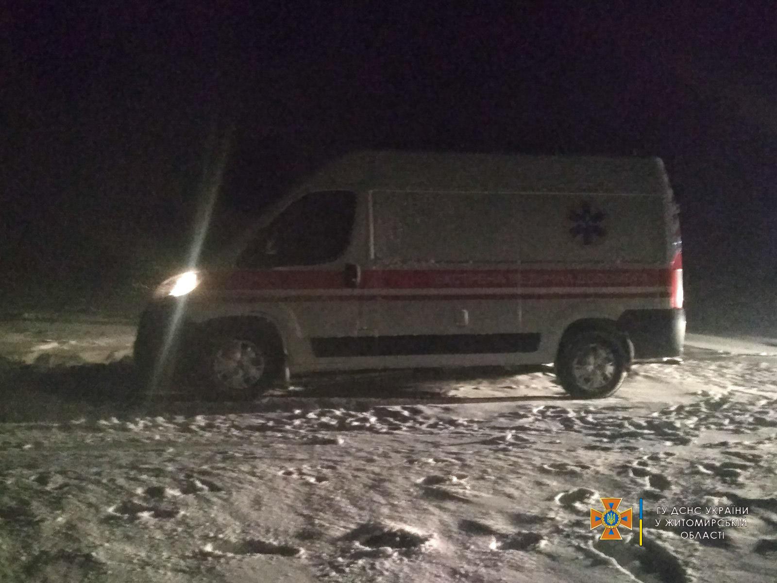 Також «швидку» витягували з засніженого узбіччя дороги в Новоград-Волинському районі.