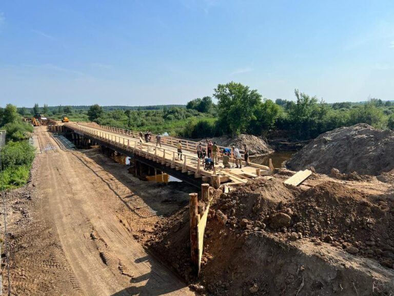Відкриття руху по побудованому тимчасовому дерев’яному мосту планується вже наприкінці липня 2023 року.