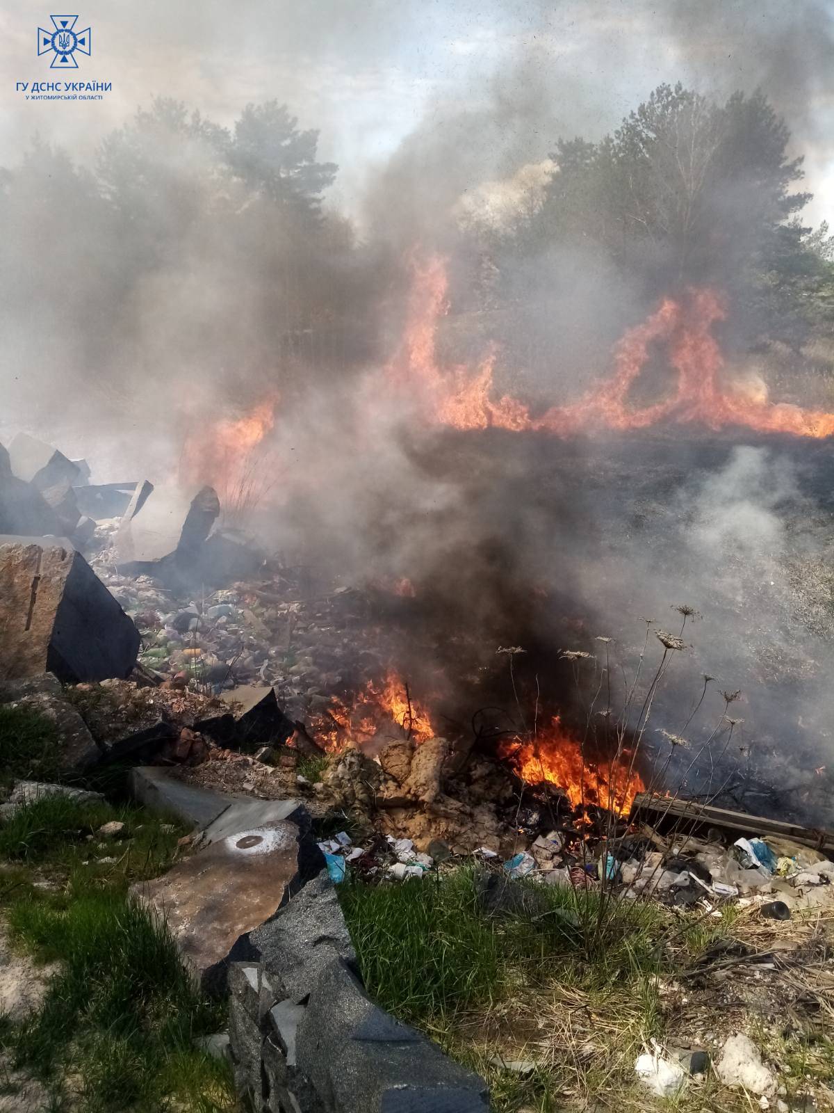 “Упродовж минулої доби на території регіону виникло чотири загоряння сухої трави на загальній площі 3,1 га. Пожежі сталися у Коростенському районі та у Житомирі.Так, вчора горів сухостій на відкритій території біля цвинтаря у с. Лугінки Лугинської територіальної громади Коростенського району“, – йдеться в повідомленні.