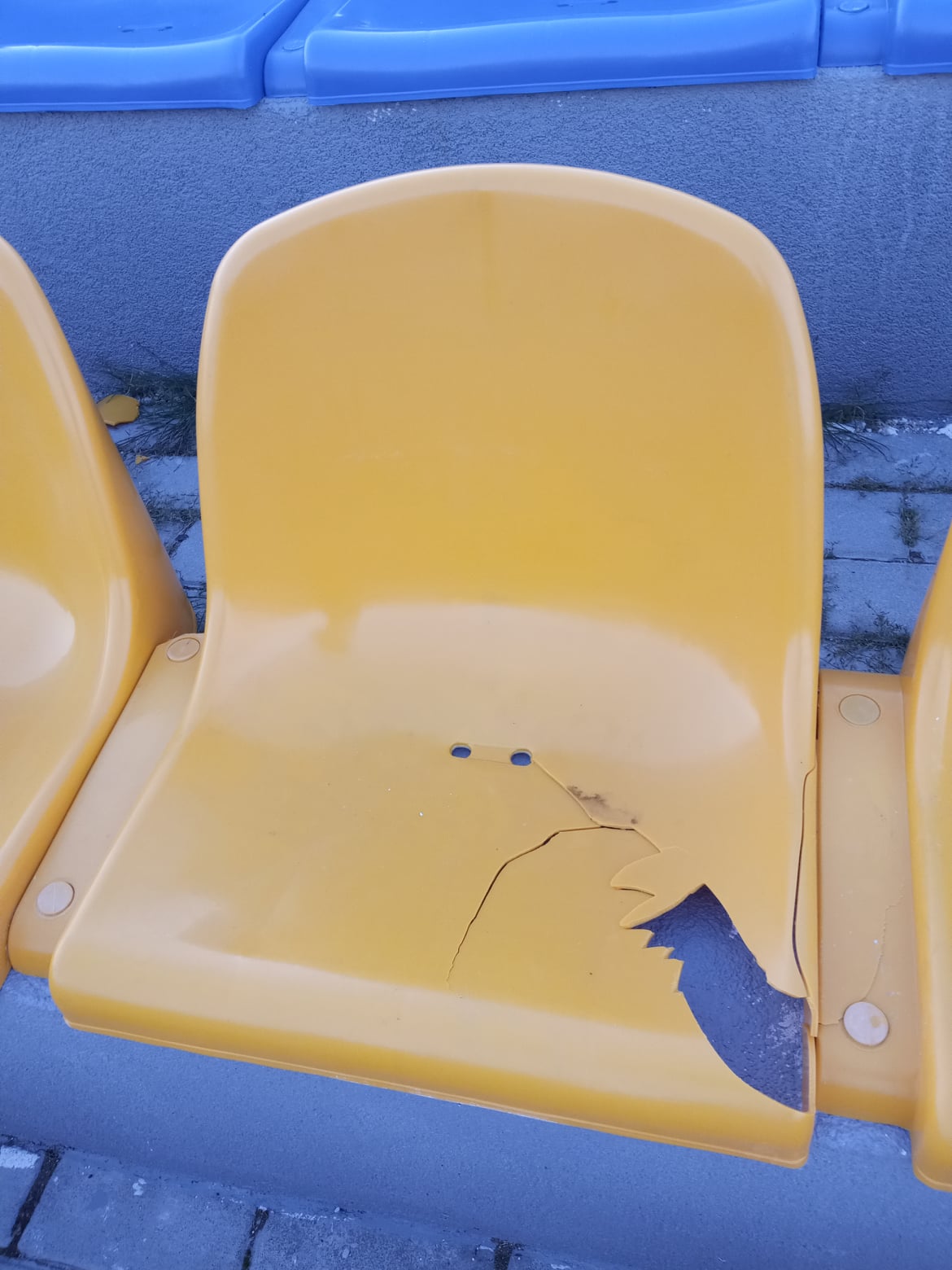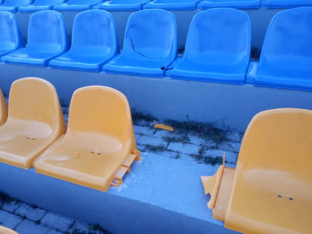У Хорошеві не пройшло і два місяці від завершення ремонту трибун стадіону “Спартак”, як частина крісел поламані та з тріщинами.